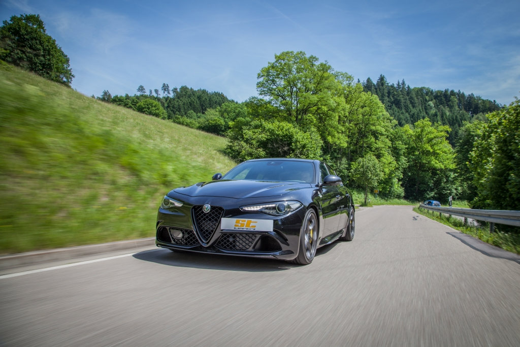 The Italian car manufacturer Alfa Romeo bethinks back to his sporty roots. The new ST suspensions springs are now available for the performance sedan with its 510 hp 2,9-liter Biturbo-V6 and lowers the Italian sports car 20 mm.