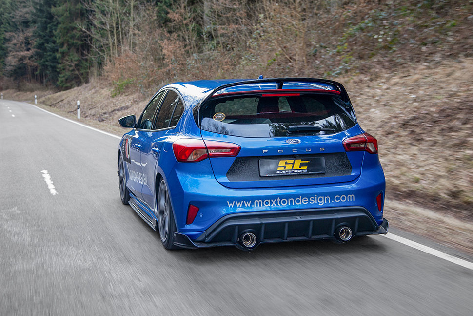 For the all new Ford Focus IV (DEH), available as a compact hatchback and station wagon, ST suspensions introduced an extensive delivery program: In addition to ST DZX and ST AZX wheel spacers for aftermarket wheels, and the Easy Fit spacer kits for the standard factory wheels, the ST XA coilover suspension kit is also available.
